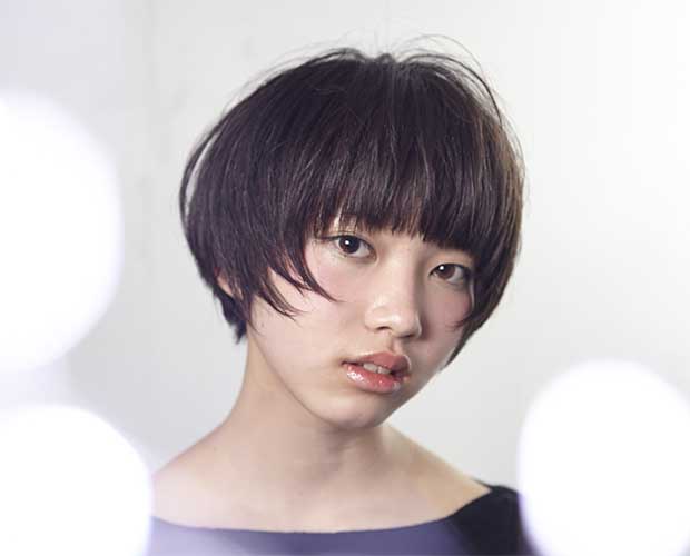 VIEWALL 17 コンパクトなマッシュショートヘアです。 可愛らしくなりがちなマッシュヘアを目の上ギリギリラインのバングと黒髪で引き締めて、クールなイメージに仕上げました。 また、襟足をすっきりさせることで後頭部に丸さをだし、骨格を綺麗に見せています。 適度に毛量を調整で毛先に軽さを与えることで毛先に動きをだし、丸みだけじゃなくシャープな印象を与えてくれます。 全体をレザーカットすることで、ドライするだけで決まるまとまりやすいヘアスタイルです。 マッシュショートコンパクト