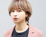 濡れた質感が涼しげな、ミディアムパーマスタイル。