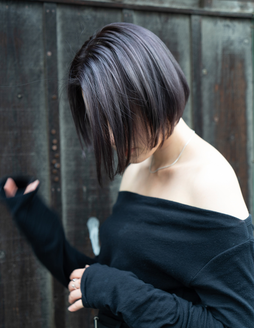 さまざまなシーンによって表情を変える透明感のあるすみれ色のボブスタイル。