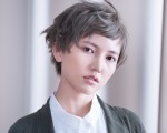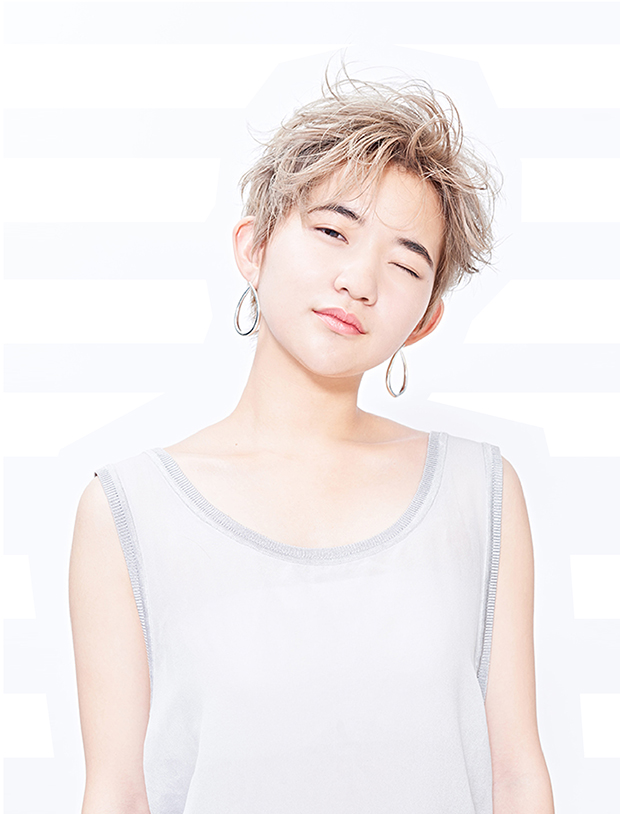 VIEWALL 23 シンプルなカットソー1枚でもキマる、ヘアが主役のスタイリングも夏ならではの楽しみ。透けるように軽やかなカラーをラフに動かして。 Editor's Note 2018 July SUMMER INVITATION ハンサムショート透け感透明感ホワイトベージュアップバングスタイリング
