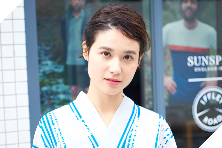 ショートはアレンジによって、メンズライクになってしまいがち。浴衣スタイルに似合う、やわらかなウェット感を出すため、オイルとバームをまぜたソフトな仕上がりになるスタイリング剤を使用。分け目をラフにして、前髪をつくり、毛先に動きを出すことで、どこか女性らしさが漂うムードに仕上げています。